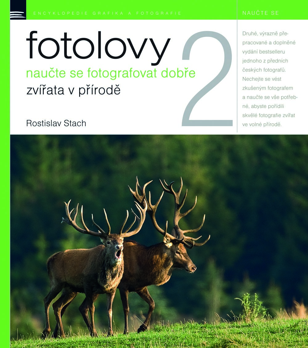 Rostislav Stach je profesionální fotograf, který se již více než 30 let zabývá fotografováním zvířat. Jeho kniha představuje jedinečný soubor skvělých snímků a praxí ověřených rad a doporučení, jak takových snímků dosáhnout. Toto druhé vydání beznadějně vyprodané publikace z roku 2007 zachovává původní členění, všechny části knihy ale byly přepracovány, doplněny nebo rozšířeny a samozřejmě byla obměněna většina doprovodných fotografií. Po základním představení fotografické výbavy vhodné pro fotografování zvěře se autor věnuje základům dobré fotografie – zejména kompozici a možnostem, jak v náročných podmínkách dosahovat skvěle ostrých a esteticky působivých snímků. Nejobsažnější je kapitola, ve které autor uvádí praktické příklady a doporučení pro fotografování ptáků (ať již v letu nebo v jejich přirozeném prostředí při shánění potravy nebo starosti o mláďata) a nejrůznějších druhů zvířat žijících u nás nebo v exotických parcích po celém světě. Zmíněny jsou i možnosti fotografování v oborách, parcích nebo zoologických zahradách. V poslední části – Fotografování v ročních obdobích – autor uvádí přehledy a tipy, jaká zvířata, kdy a kde je možné nejlépe fotografovat na jaře, v létě, na podzim a v zimě. Celá kniha je doslova prošpikována desítkami skvělých fotografií všech možných druhů ptáků a zvířat, od nejmenších syslů, veverek nebo kun až po jeleny, medvědy nebo losy, které můžete fotografovat u nás nebo v nejbližším okolí, ale také exotických zvířat, jako je slon, hroch, lev nebo medvěd grizzly. Pokud vás více zajímají akční snímky zvěře, ani v tomto případě kniha nezklame: vedle lva lovícího u napajedla v Africe je v knize zachycen i neméně impozantní útok jelena na muflona na české mýtině.