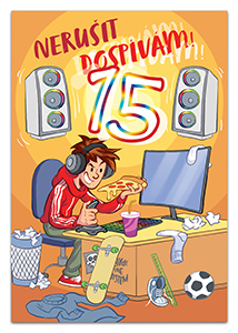Vtipné blahopřání k 15. narozeninám. Přání je vevnitř zdobeno motivy z titulní strany. Nemá předepsaný text. Baleno v bílé obálce. Rozměr 19,5x13,5 cm.