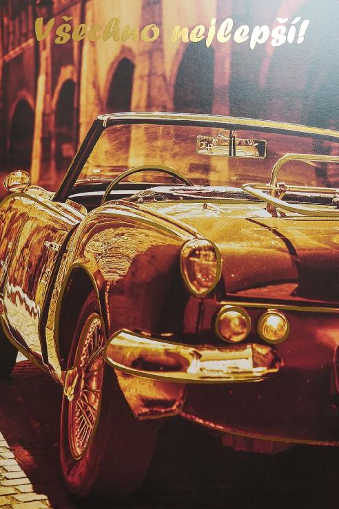 Blahopřání k narozeninám s textem na titulce Všechno nejlepší! Zdobeno zlatým potiskem. Přání je vevnitř zdobeno motivem z titulní strany a textem: Ať Tě život provází jen tou nejlepší cestou. Ať je Tvůj den plný radosti a oslav! Baleno v sáčku, součástí je bílá obálka. Rozměr 17x11,5cm.