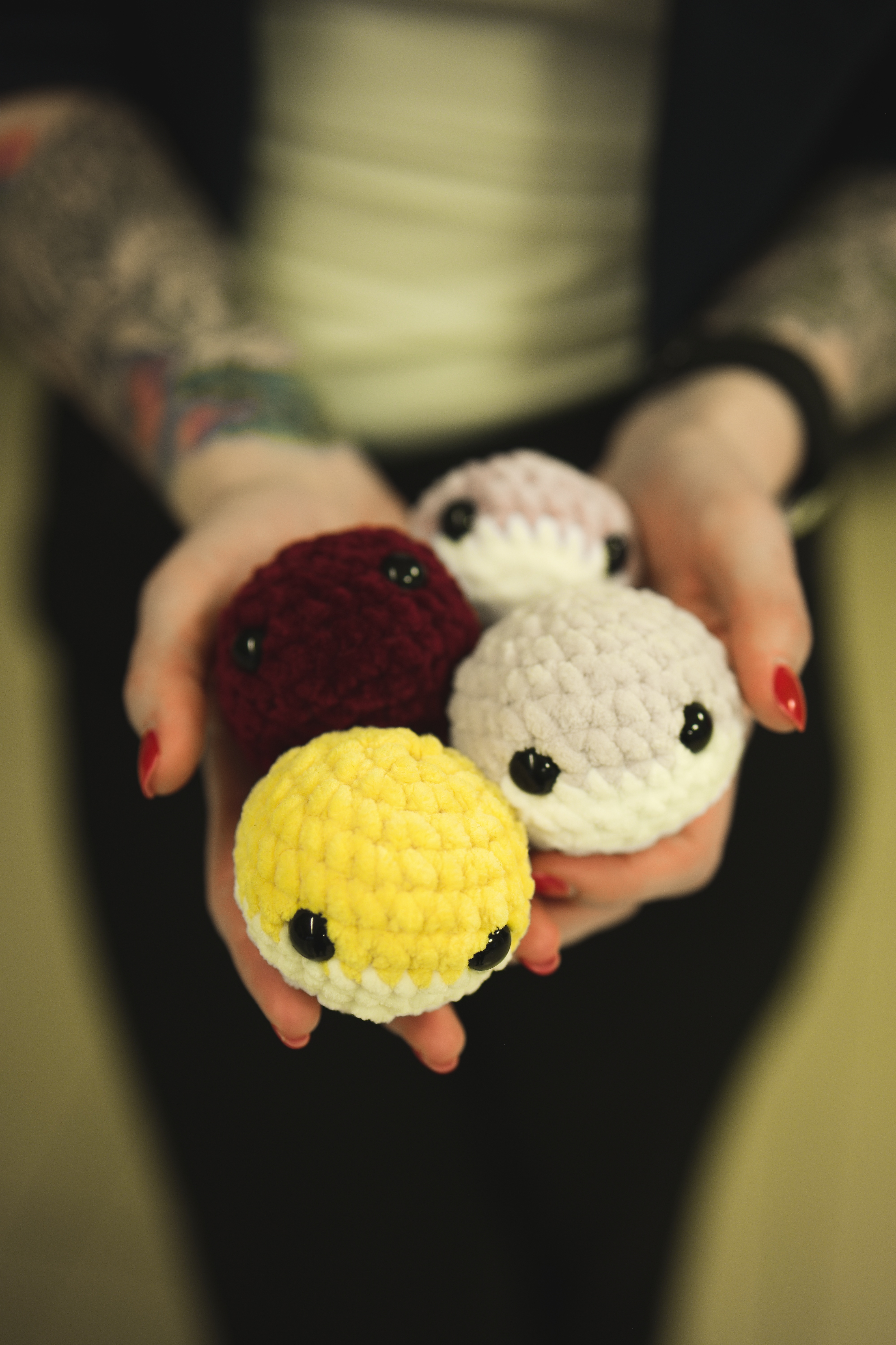Jedná se o ruční výrobu a každý kus je originál - může se tedy mírně lišit od fotografií. Jsou uháčkované z žinylkové vlny. Háčkovaná stresová kulička slouží k uvolnění napětí a stresu. příze. Mix barev.