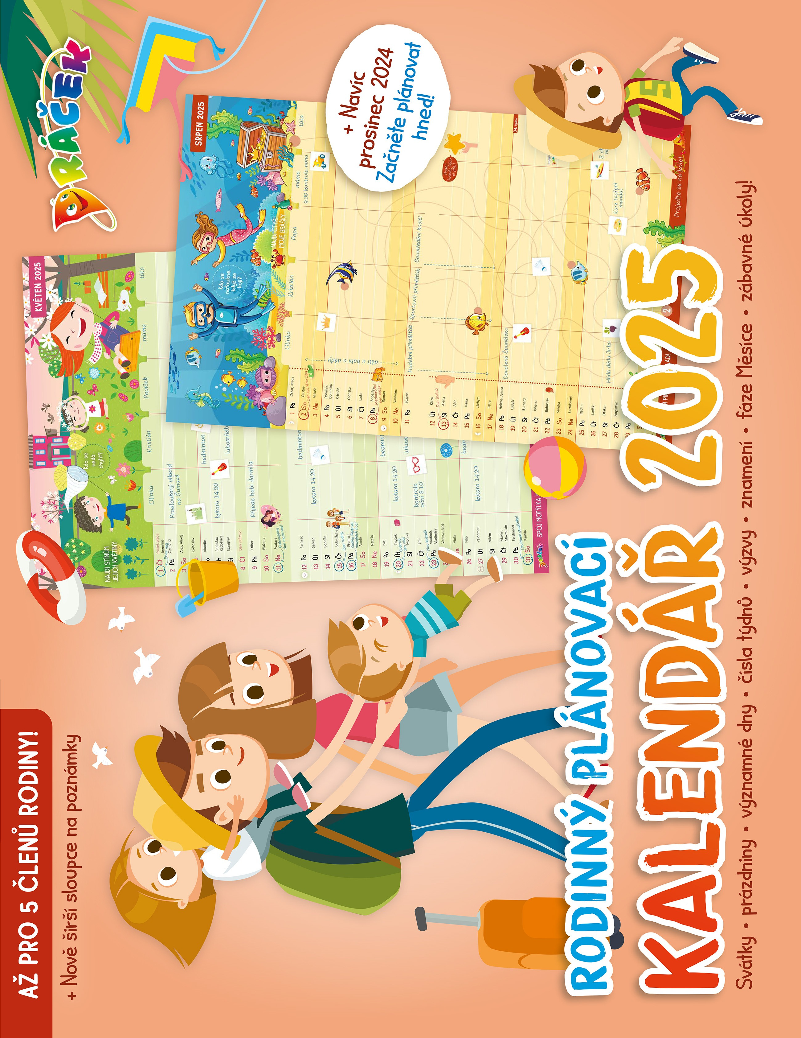 Nástěnný plánovač aktivit až pro 5 členů domácnosti od časopisu Dráček. Všechny měsíce na tvrdém papíru, formát 445 × 285 mm, nově širší sloupce na poznámky. Navíc i prosinec 2024, takže můžete začít plánovat ihned! Svátky, prázdniny, významné dny, čísla týdnů, výzvy, znamení, fáze Měsíce a navíc i zábavné úkoly pro děti. Nejoblíbenější kalendář dětského časopisu Dráček!