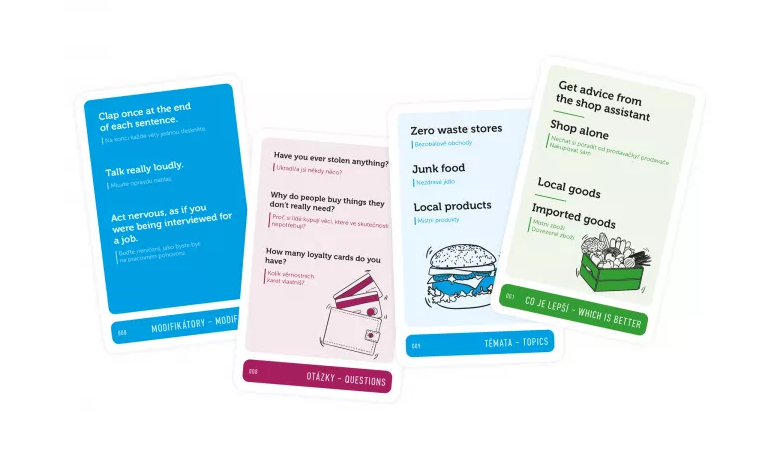 Karty jsou určeny pro každého, kdo si chce zlepšit angličtinu. Čas odhodit zábrany a začít mluvit! Popovídejte si o svých zálibách, práci, rodině, jídle nebo cestování.